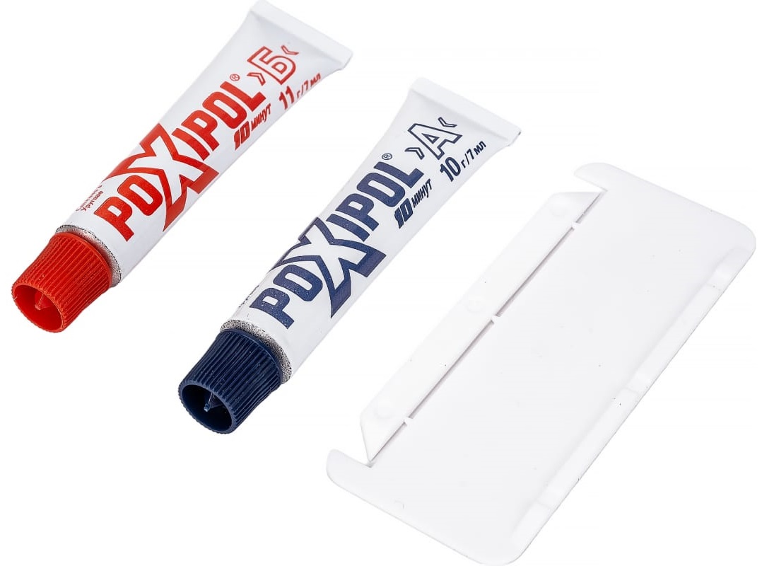 Двухкомпонентный эпоксидный клей общего назначения, имеет металлический цвет.