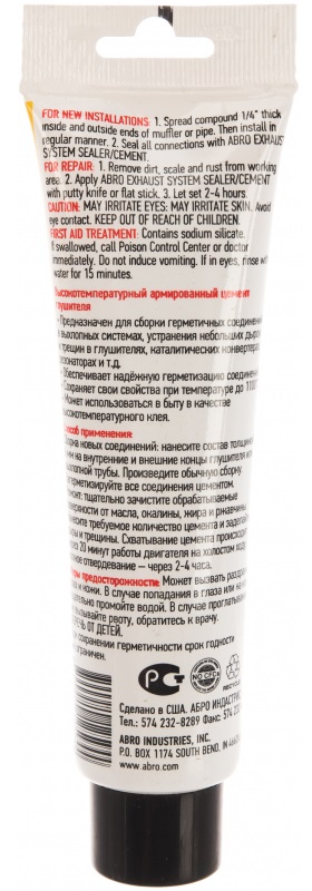 Цемент для устранения небольших пробоин и трещин в выхлопной трубе, глушителе, каталитическом конвертере или резонаторе.