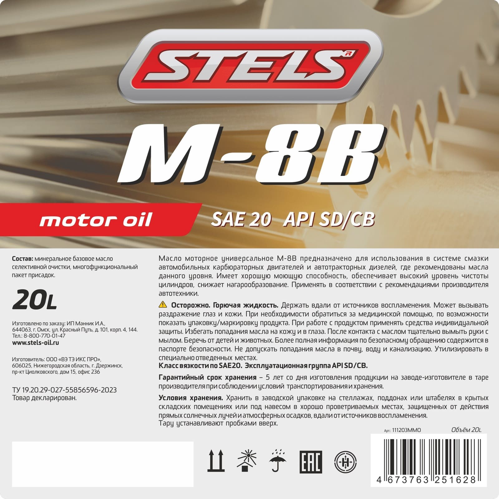 Масло моторное STELS М8В 20л