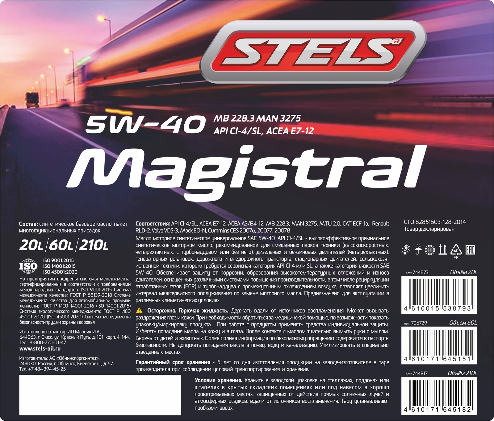 Масло моторное STELS Magistral 5W40 1л розлив из бочонка