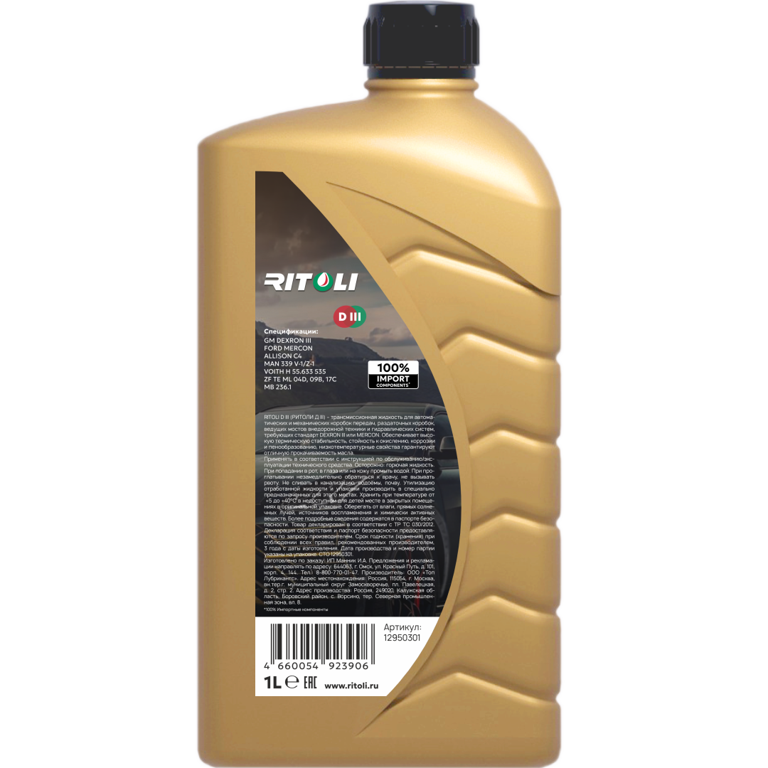 Масло трансмиссионное RITOLI D III 1л