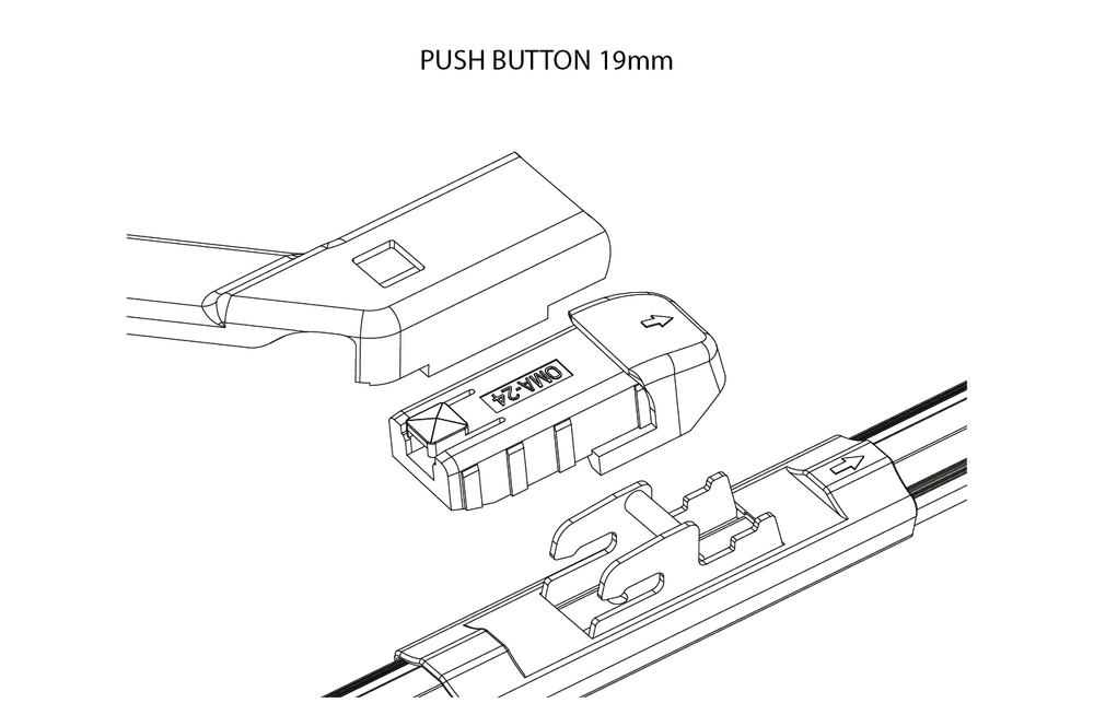 Адаптер для щёток стеклоочистителя OSAWA. Тип крепления - PUSH BUTTON 19mm.